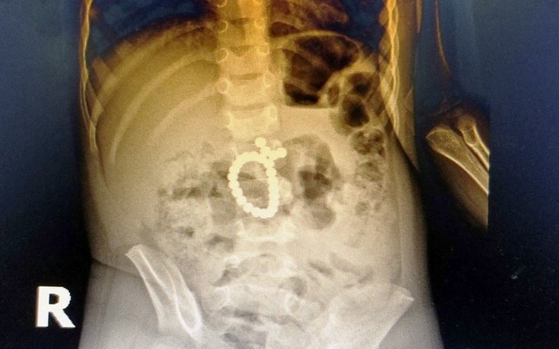 Theo các bác sĩ, nuốt dị vật là tai nạn thường gặp ở trẻ nhỏ. Có nhiều trẻ phải nhập viện do nuốt phải dị vật như đồ chơi, cúc áo… Tuy nhiên, trường hợp nuốt phải chuỗi bi nam châm đồ chơi như bệnh nhi này là cực kỳ nguy hiểm.