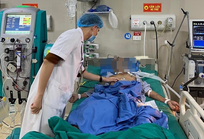 Bệnh nhân nhập viện trong tình trạng ý thức tỉnh táo, môi khô, khát nước nhiều, bụng cứng, chướng căng, tim nhịp nhanh. Kết quả CT ổ bụng cho thấy hình ảnh viêm tụy cấp thể phù, bác sĩ chẩn đoán do lạm dụng rượu và thuốc lào. Bệnh nhân đang được các bác sĩ khoa Hồi sức cấp cứu điều trị, tiên lượng dè dặt.