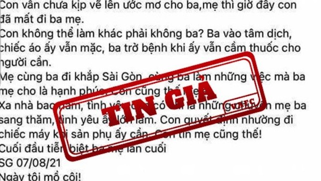 Trung tâm xử lý tin giả Việt Nam (VAFVC) vừa khẳng định, câu chuyện cảm động về một bác sĩ tên Trần Khoa được cho là đã nhường máy thở của mẹ đẻ cho một sản phụ song sinh đang cần máy thở lan truyền trên mạng xã hội ngày 7/8, là tin giả.
