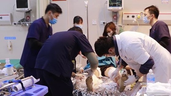 Bệnh nhi 3 tuổi nhập viện Sản Nhi Vĩnh Phúc trong tình trạng chảy nhiều máu, vùng trán bị khuyến hổng phẩn mềm lớn, tổn thương sâu.