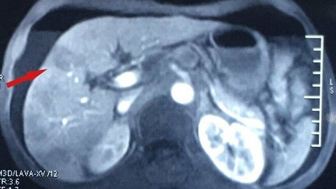TP HCM - Khối u ung thư ở gan trái của cụ ông 81 tuổi xâm lấn sang gan phải, xâm lấn cả hai stent đã đặt trước đó.
