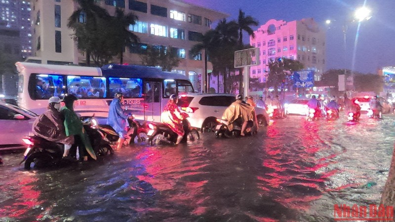Ghi nhận tại các tuyến đường lớn của thành phố như: Nguyễn Văn Linh, Hàm Nghi, Đống Đa… tình trạng ùn tắc xảy ra vào giờ tan tầm khi lượng xe cộ lưu thông đông đúc kèm với lượng nước ngập sâu gây khó khăn trong việc đi lại. Nhiều người xe chết máy, phải dắt bộ để về.