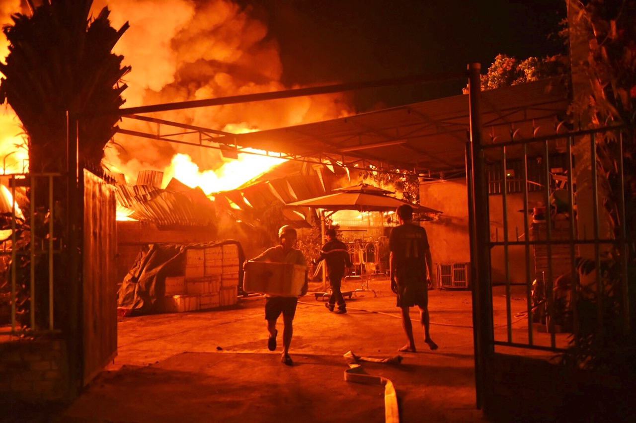 Do lửa lớn, kho toàn vật liệu dễ cháy nên ngọn lửa lan nhanh, lực lượng tại chỗ cố gắng chữa cháy nhưng bất thành.