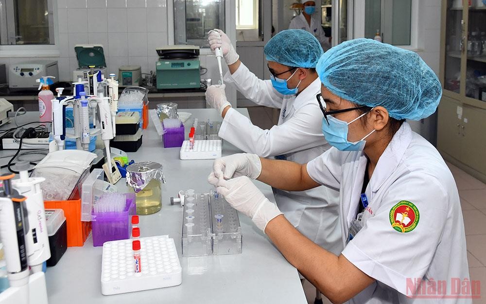Nghiên cứu vaccine Nanocovax trong phòng thí nghiệm. (Ảnh: DUY LINH)