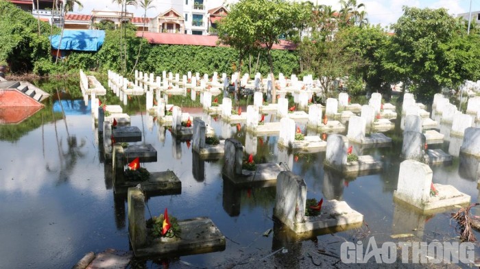 Từ thông tin của người dân phản ánh tới Báo Giao thông, PV đã trực tiếp có mặt tại nghĩa trang liệt sĩ xã Đông Tảo, huyện Khoái Châu, tỉnh Hưng Yên và ghi nhận tình trạng xuống cấp, ô nhiễm, đặc biệt là tình trạng các ngôi mộ tại đây thường xuyên ngập trong nước.