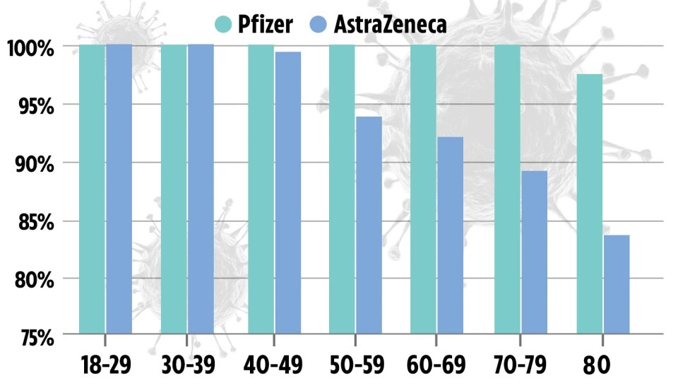 So sánh hiệu quả của vắc xin Pfizer và AstraZeneca ở từng độ tuổi