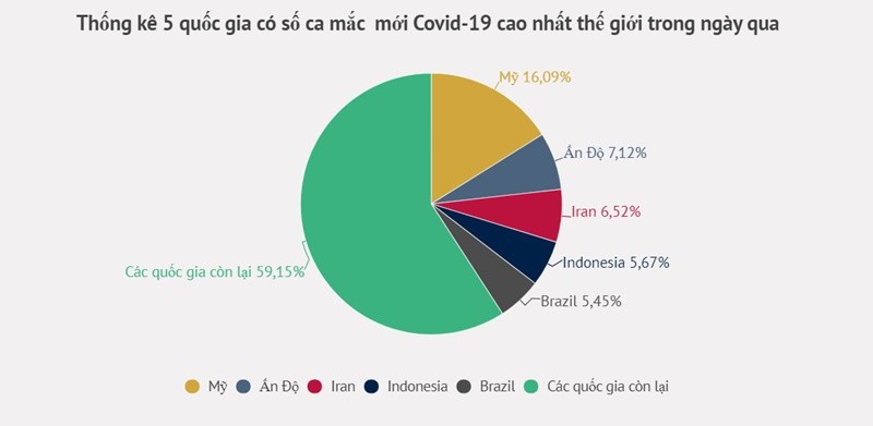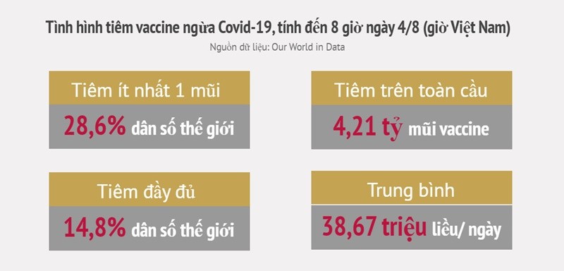 Theo thống kê của Worldometers, tính đến 8 giờ ngày 4/8 (giờ Việt Nam), số ca mắc Covid-19 trên toàn cầu đã vượt mốc 200 triệu. Biến thể Delta đang lây lan mạnh tại nhiều quốc gia, đặc biệt là ở Mỹ. Trong những ngày gần đây, nước này liên tục dẫn đầu về số ca mắc mới tính theo ngày.