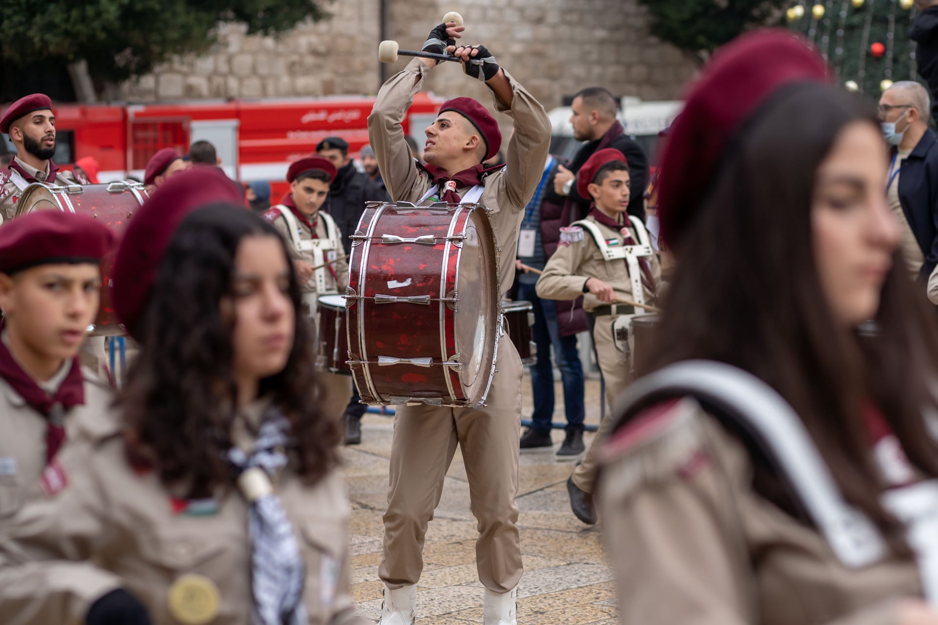 Màn trình diễn bên ngoài Nhà thờ Nativity trong lễ mừng Giáng sinh tại Bờ Tây. (Ảnh: Tân Hoa xã)