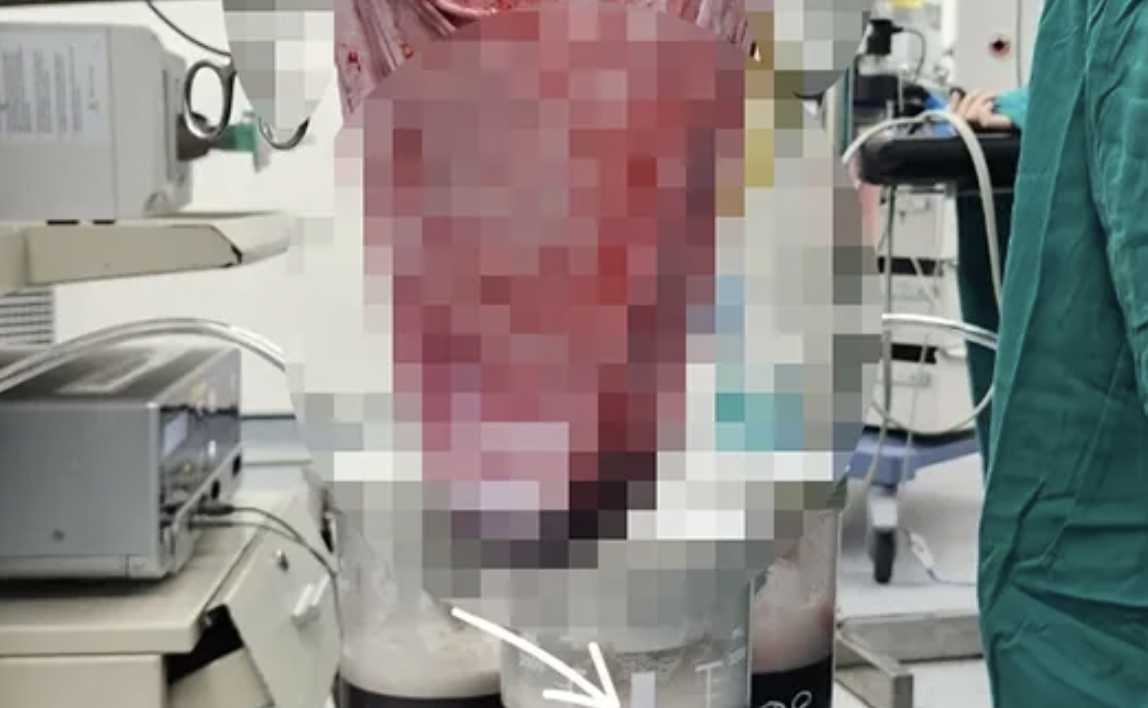 Sau khi tiếp nhận ca bệnh, các bác sĩ thăm khám, chỉ định mổ hở cho bệnh nhân để đưa khối u ra ngoài. Theo các bác sĩ đây là khối u dạng dịch, chủ yếu chứa nước nên đã cho mổ hở để hút hết dịch bên trong rồi mới lấy phần vỏ khối u ra ngoài.