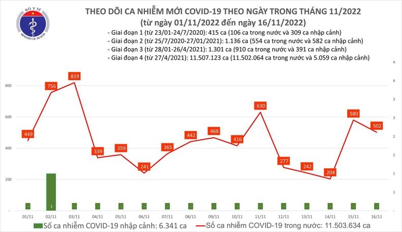 Ngày 16/11: cả nước ghi nhận 502 ca mắc Covid-19 mới